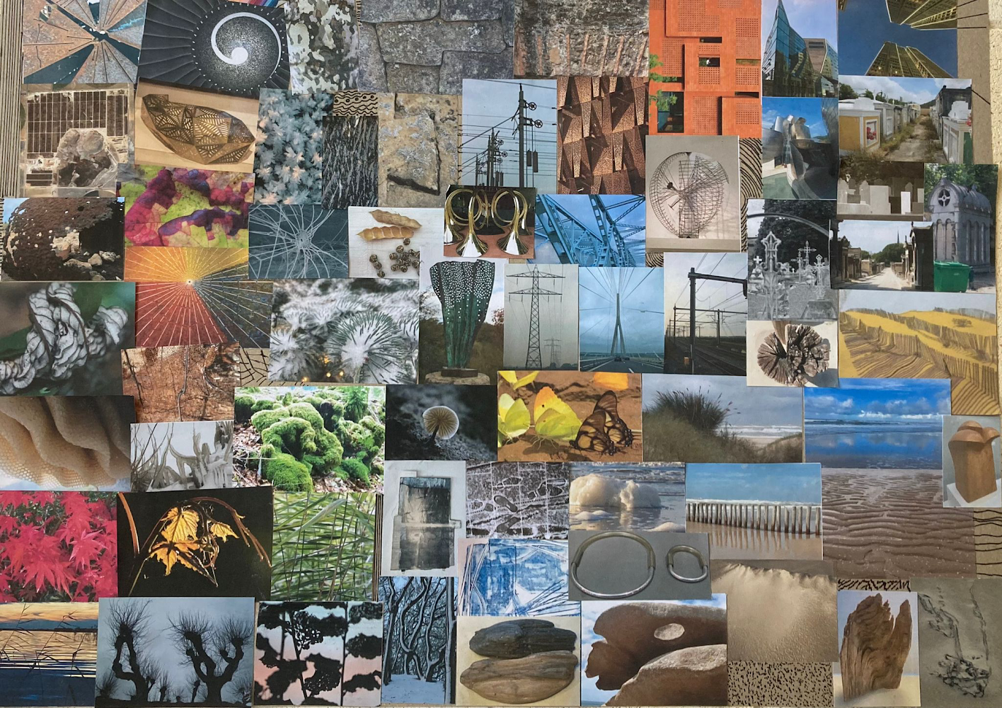 Mijn inspiratiebronnen vind ik in zowel de natuur als in de architectuur. Lijnen en texturen trekken altijd mijn aandacht. Ik houd van ritme en herhaling. Qua kleuren gebruik ik vaak blauw (favoriet!) en groen, soms bruin of terra. Misschien omdat je die kleuren in de natuur veel ziet?